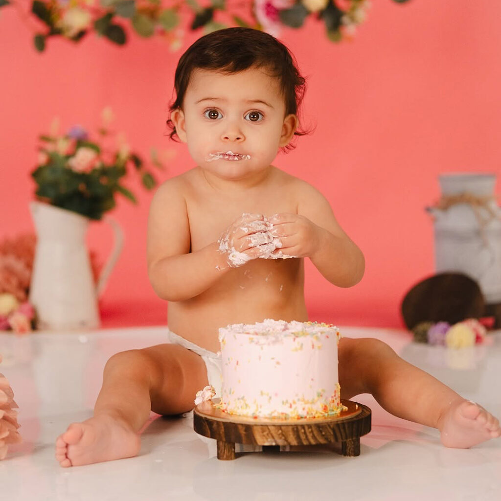 A playful, colorful, joy-filled session to celebrate your baby’s first big milestone — messy, fun, and full of laughs!